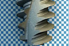 The expanding tapered body and double variable thread design of NobelActive™ produces a gradual bone-condensing property, illustrated here using a checkerboard background representing bone.